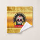 Sugar skull in the center of a circle of small black with white skulls and three yellow burning candles. "This is from the Day of the Dead know as Dia de los Muertos sugar skulls .