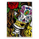 Pretty sugar skull girl with a red flower in her long brown hair. Fun colours and patterns.