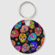 Mexican folk art sugar skulls keychain. Background colour can be customized.