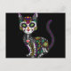 Sugar Skull Mexican Cat Halloween Day Of The Dead Holiday Postcard