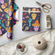 Sugar skull on dark blue pattern wrapping paper