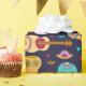 Sugar skull on dark blue pattern for wrapping Thanksgiving gift, Christmas gift, Halloween gift, New year gift.