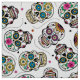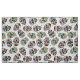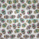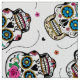 Bright and colourful design of sugar skulls unique and fun fabric. There are several different skull images with boho / bohemian floral designs.