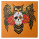 Sugar Skull Roses Owl Tile