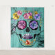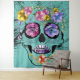 Sugar Skull Teal Female Flower Skull. Shades of Lavender Female Flower Skulls large wall art. Flower Skull Wall Hanging. "Day of the Dead" art design for lovers of skulls and bold flowers with teal grunge background accents. Original designed Gothic human skull with vibrant flowers. You can experiment with background colours, sizes and styles to match many room decor themes for bedroom to living rooms.