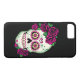 Dia de los Muertos (Day of the Dead) sugar skull with magenta roses is a beautiful floral skull for anyone who loves colourful skull art.