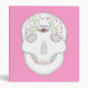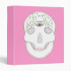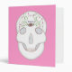 Drawing of a white sugar skull with a third eye that is brown, green vines with pink flowers and flower buds coming out from sides of the third eye, and the word Imagine, right above the eye, is printed on binders.