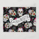 A colourful postcard design for Day of the Dead festivities, featuring a variety of decorative sugar skulls with flower and swirl accents on an optional black background. If you prefer, the 'Feliz Dia de los Muertos' text layer can be deleted for a pattern-only design. Search ID725 to see other colour choices and products with this fun pattern.