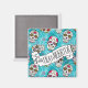 Sugar Skulls and Swirls Rose Turquoise ID725 Magnet