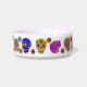 This is a heavy, durable bowl decorated with Tibbies of many colors, the perfect size for hungry/thirsty Tibs. The design is interesting and printing clear.