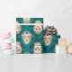 This any occasion wrapping paper has Dia De Los Muertos or Mexican Day of the Dead style with colourful sugar skulls illustrations against a teal chequered background that's accented with illustrations of lace.