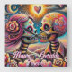 Sugar Skulls in Love Chalk Pastel Personalized Square Wall Clock