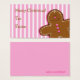 Customizable Christmas gift tags with an adorable little gingerbread man with pink candy nose and buttons and white frosting. Pink and white striped background. Coordinated note cards, postage stamps, stationery and mugs also available! PinkInkArt original!