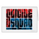 Red and Blue Suicide Squad logo with characters seen inside each letter.