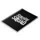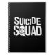 Black and White Suicide Squad logo with a Skull in the letter Q. White letters on black background.