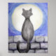 L'original est un crayon aquarelle dessiné sur du papier aquarelle d'un chat noir assis sur un mur en pierre, regardant une pleine lune.