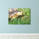 Sulcata Tortoise, Mouth Open, Grazing in Grass Canvas Print