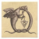 Alchemy symbol or sigil for the elements sulphur and mercury surrounded by two dragons biting each other's tail in a magic symbol for one stage in the process of alchemy to achieve the Philosopher's stone by transmuting base matter into pure gold. © dotpattern