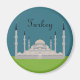 The magnet features a vector graphic of the Sultan Ahmed Mosque in Istanbul, Turkey. The text can be customized as desired.