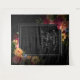 Lush floral arrangements in bright, warm colours ranging from coral and rose pink to golden yellow combine with vignetted, obsidian backgrounds to give the pieces in this elegant wedding suite a dark, moody ambience. This striking photo booth backdrop would be perfect for a romantic wedding at any time of year. We've added 'Always & Forever' calligraphy as a suggested option. Easily add your names and wedding date using the provided template. Search ID829 to see other colour choices and products coordinating with this design.