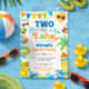💦☀️ Make waves with this bright and playful “Two the Lake” Birthday Invitation — perfect for celebrating your little guy’s second birthday in fun, sunny style! Featuring cheerful watercolor beach elements like rubber ducks, floats, palm trees, a smiling sun, and colorful bunting, this design is bursting with vibrant summer colors including aqua blue, sky blue, leafy green, sunshine yellow, and bright orange.
