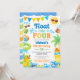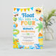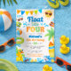 💦☀️ Make waves with this bright and playful “Float into Four” Pool or Beach Party Birthday Invitation — perfect for celebrating your little guy’s fourth birthday in fun, sunny style! Featuring cheerful watercolor beach elements like rubber ducks, pool floats, palm trees, a smiling sun, and colorful bunting, this design is bursting with vibrant summer colors including aqua blue, sky blue, leafy green, sunshine yellow, and bright orange.