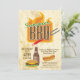Popular summer barbecue party invitation featuring a summer bbq with flame and barbeque fork set on a vintage faux parchment paper with a hamburger, bottle of beer and hot dog. Flip our cook out invite over to find a matching back for an extra special touch. Stylish summer party invitation for all your summer get togethers including memorial day, 4th of July, Labour Day and pool parties. Visit our shop to view a large assortment of fun barbecue invitations.
