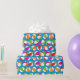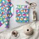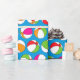 Beach balls in orange, pink, green, red and white on a blue background makes a fun gift wrap for summer birthdays and other occasions.