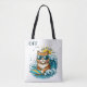 Tote bag featuring a cute kitty with sunglasses on a surf board on the waves in the ocean with a warm summer sun. Perfect for a trip to the beach or for someone who loves surfing or watching surfers.