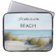 Laptop sleeve featuring an image of dunes overlooking a beach and ocean on a peaceful sunny day.