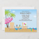 Modern and fun beach party invitation. Features two beach chairs, a colourful umbrella and tropical drinks beneath swaying palm trees. Some elements corazondulce.etsy.com