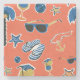 Summer Beach: Relaxing Seamless Pattern. Stone Coaster