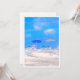 Beach scene illustration with blue skies, sandy shores, and relaxing beach chairs - perfect for retirement party celebrations. Inspired by a Mediterranean beach photo, this painterly design captures the relaxed coastal lifestyle of retirement. Ideal for honoring someone's transition to a life of leisure and beach living. Fully customizable with names, party dates, venue details, and personal text. Great for beach-themed retirement celebrations and seaside party invitations.