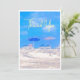 Beach scene illustration with blue skies, sandy shores, and relaxing beach chairs - perfect for retirement party celebrations. Inspired by a Mediterranean beach photo, this painterly design captures the relaxed coastal lifestyle of retirement. Ideal for honoring someone's transition to a life of leisure, travels or beach living. Fully customizable with names, party dates, venue details, and personal text. Great for beach-themed retirement celebrations and seaside party invitations.