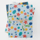 Summer beach with starfish, shells and pebbles wrapping paper sheet