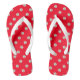 Beads on beautiful red background on flip flops for the summer for all occasions.