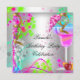 Summer Birthday Party Colourful Cocktail Pink Silver lime Teal Blue. Womens ladies. Elegant Classy All Occasion Invitations. Party birthday invites Template