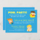 Invite family and friends for a chill out session and fun time with this colourful pool party invitation which is perfect for summer! The pool party invite has a trio of cute kids having fun in the cool blue water with various pool items like rubber ducky, beach ball and buoy. Reverse page has a cute rubber ducky float. Perfect for anyone who is planning a birthday in a backyard pool or inflatable pool or holding the event at a water theme park or clubhouse swimming pool. Personalise easily with your party details.