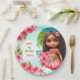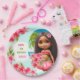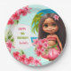 Cute exotic tropical summer Hawaiian theme girl's birthday party Paper Plates with the cutest little tiki girl with hibiscus flower bouquet in wonderful bright summer colours. Easily personalize the text and don't forget to visit the store for matching items. :) Kate Eden Art