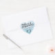 Heart-shaped blue watercolor wedding cake stickers are a beautiful way to say thank you to your guests. The soft pale blue background has soft puffs of flowers along the bottom edge of the heart and up the right side. Love and thanks is written in a contemporary script font to create a modern and young vibe. The bride and groom names and wedding date are written below. An open heart adds to the romantic flair. Easy to customize for your own wedding cake boxes and other wedding favours. Also use them as envelope seals for your thank you notes.