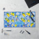 Summer blue Sicilian Amalfi Mediterranean majolica tiles Desk Mat. Chic floral botanical citrus garden pattern inspired by the summer bright italian themed art of majolica. Beautiful Sicilian ceramic tiles in pink yellow and blue. A fun style bright design for home decor, clothes, mobile and Ipad cases, invitations and much more. You can change all text colours and fonts, click to customize further underneath the text customisation area this will take you into the design tool. A unique gift for birthdays, holidays and any special occasion. Whether for valentines day, Christmas or as a gift in general it makes a great gift idea