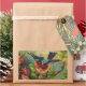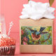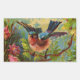 This colourful print illustrates a bluebird resting on a branch in a flower filled forest. This view shows the bird as it is about to take flight. Bright blue, pink, yellow and green colours make an exciting image for decor and personal accessories.