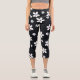Summer Boho Black White Daisy Flowers Capri Leggings