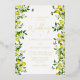 This is a summery botanical lemon and citrus themed wedding invitation in real pressed gold foil. The design shows summery lemon tree branches, its white flowers, green leaves and fluttering butterflies. It was inspired by Italian lemon groves and hot mediterranean weather and would suit any couple looking for a modern and elegant, summery wedding. Please contact the designer for any variations of this design or for any matching products.