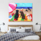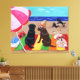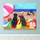 Summer Breeze Labradors Canvas print. Funny Labrador Retriever on the beach Painting design. Black Labrador and Chocolate Labrador and Yellow Labrador are all painted in the picture. Happy and cute Labrador Retriever dogs are having lots of fun on the beach. Colourful and cheery summer scenery with Labs. Painted by Naomi Ochiai from Japan.