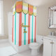 Summetime cabana inspired. Coral and turquoise vertical stripes against white background. Pastel yellow watercolor stripes across scalloped white and coral top. Designs by TamiraZDesigns.