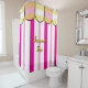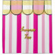 Summetime cabana inspired. Pastel and bright pink vertical stripes against white background. Pastel yellow watercolor stripes across scalloped top. Designs by TamiraZDesigns.