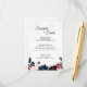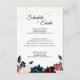 This “Summer Celebration” wedding schedule enclosure card inspires a traditional and elegant floral atmosphere for a garden wedding. With pink, royal blue, and cabernet burgundy flowers, the rich reds and navy palate combined with gold glitter compliment formal spring, summer and autumn themes, creating a classic and versatile luxury marriage celebration experience. Add more on the back for a timeline packed with even more events and information for your guests.