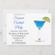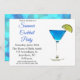 A cute blue invitation that you can personalize for your summer cocktail celebration! A blue bokeh pattern decorates the back of the card.