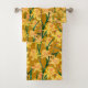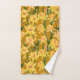Transform your bathroom into a summery paradise with our yellow daffodil patterned bathroom towel set on a mustard yellow background. This vibrant yellow and white design features pretty watercolor daffodils, creating a serene and relaxing atmosphere in any space